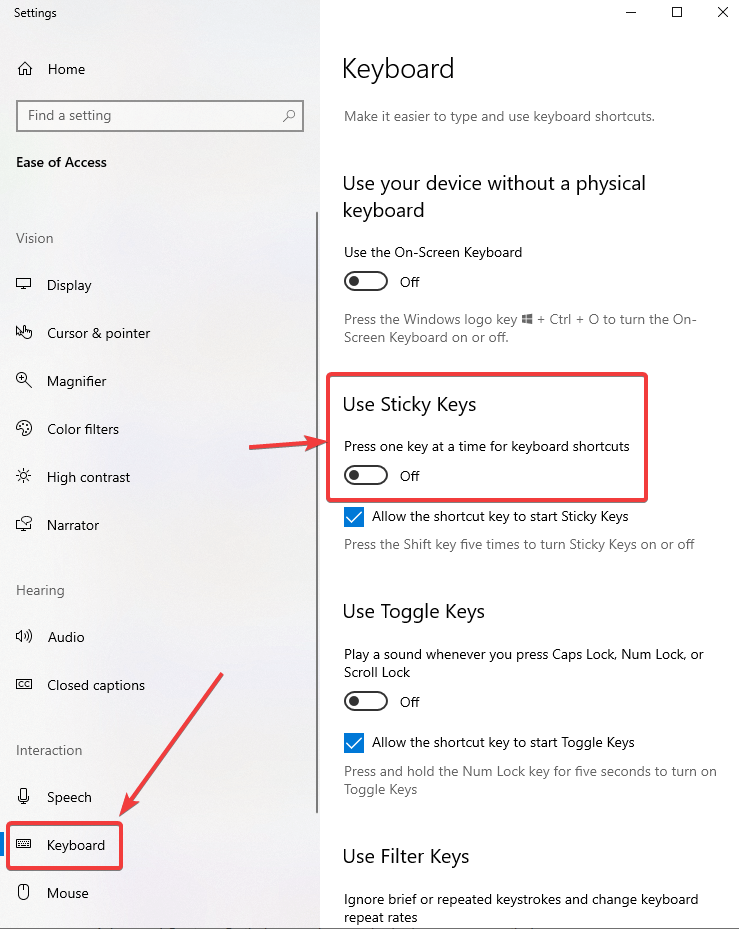 Étape 4 –Activez l'interrupteur à côté deTouches collantes.