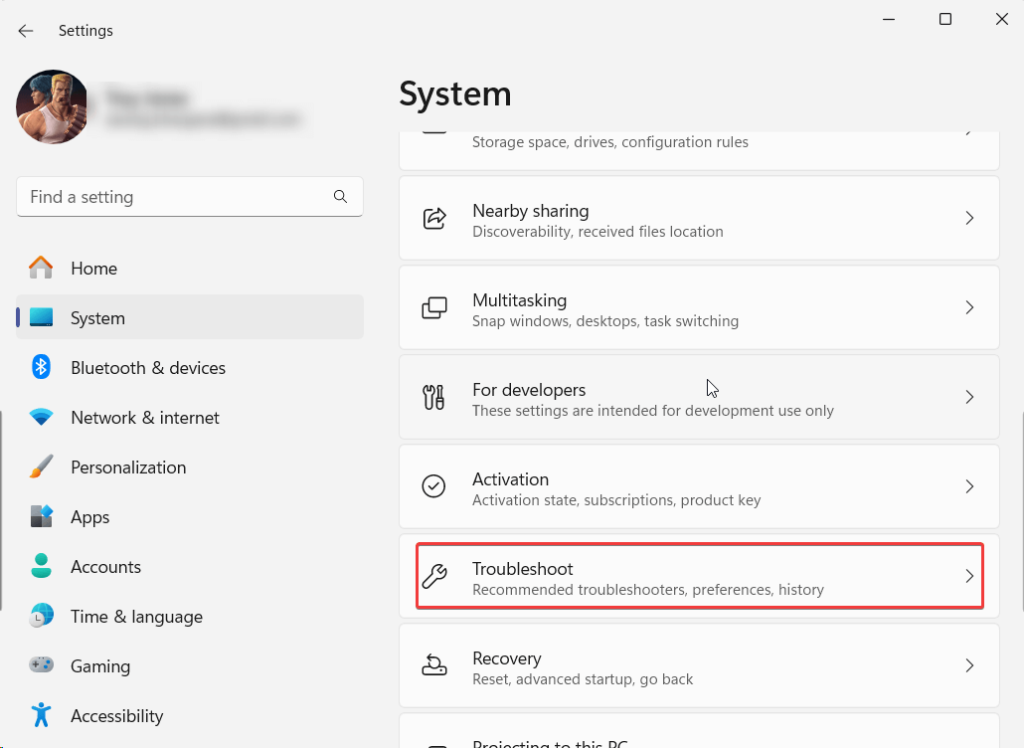 Étape 2 –Dans la partie droite, cliquez surDépanner.