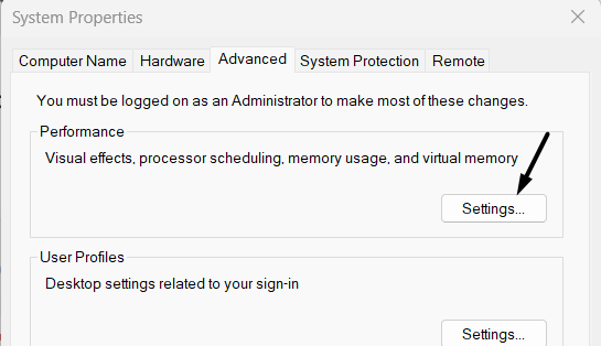 4.Allez auAvancéet choisissez l'ongletParamètresoption en vertu duPerformancesection.