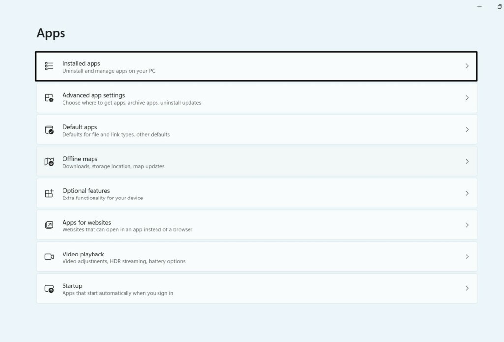 2.ChoisirApplicationsà gauche, choisissez leApplications installéesoption, puis recherchez le programme.