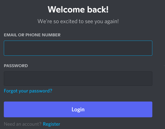 Gardez les identifiants de votre compte Discord à portée de main, car vous en aurez besoin pour vous connecter à une version alternative.