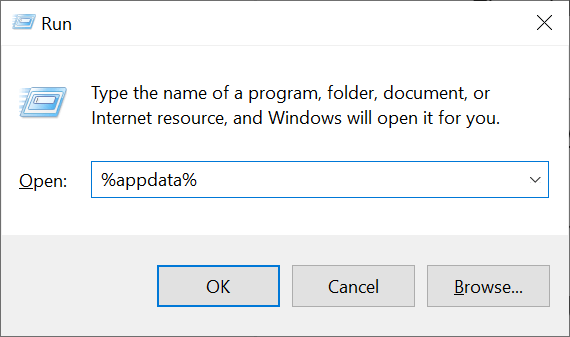 - Tapez ce qui suit dans la zone Exécuter et appuyez surEntrer: %appdata%