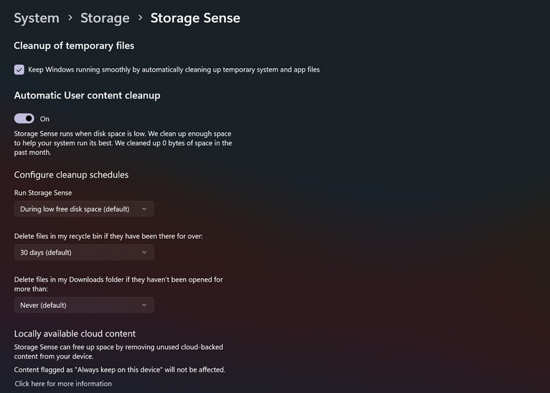 4. Utilisez Windows Storage Sense dans Windows 11