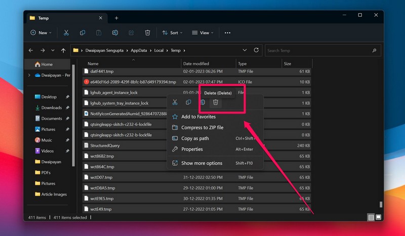 8. Supprimer manuellement les fichiers temporaires dans Windows 11