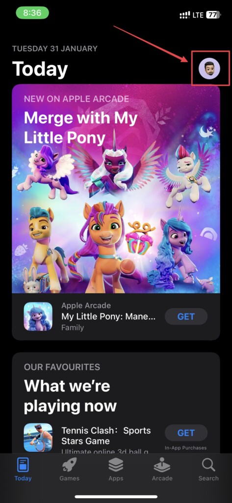 2.Appuyez sur votrephoto de profilen haut à droite.