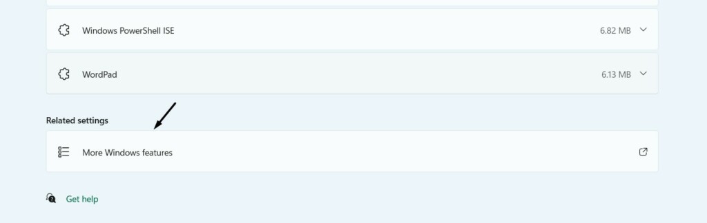 2.Dans leFonctionnalités optionnellesfenêtre, allez tout en bas et choisissezPlus de fenêtres caractéristiques.