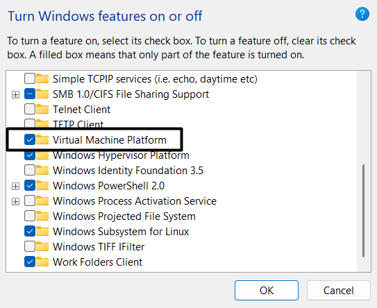 3.Dans leActiver ou désactiver la fonctionnalité Windows, décochezPlateforme de machines virtuellespour désactiver VBS.