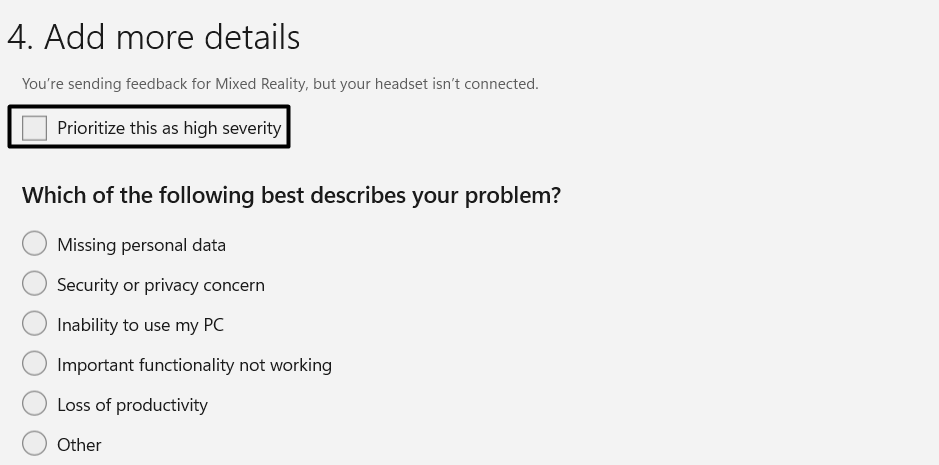 Si aucun des correctifs mentionnés ci-dessus ne vous aide à réparer Intel Turbo Boost qui ne fonctionne pas sous Windows 11,signaler le problème à Microsoft via le programme Feedback Hub. J'espère qu'ils vous donneront des résolutions de travail pour que votre ordinateur fonctionne à nouveau correctement. Nous avons mentionné ci-dessous les invites pour signaler un problème dans le programme Feedback Hub :