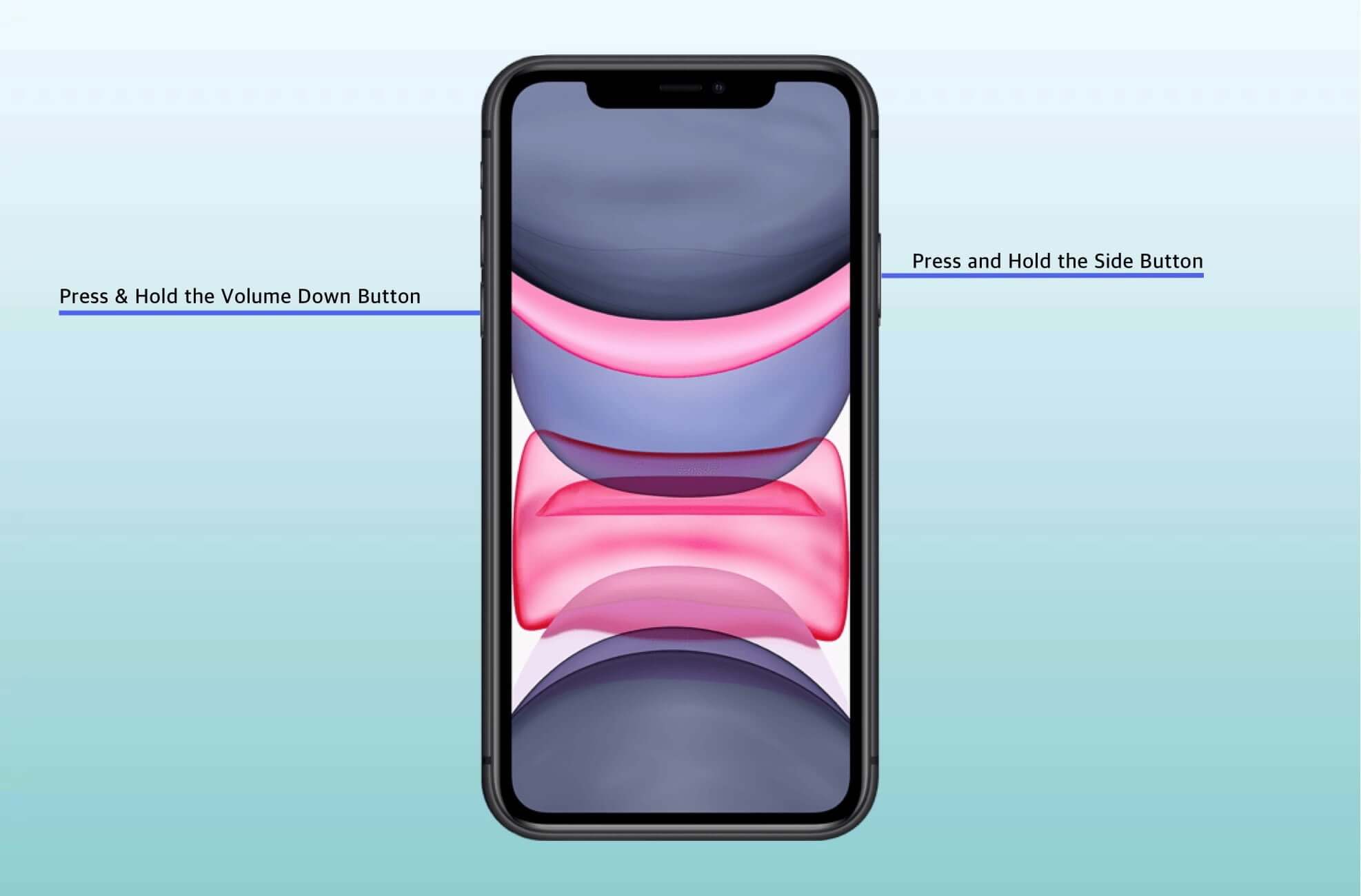 Appuyez simplement et relâchez rapidement le bouton d'augmentation du volume, puis le bouton de réduction du volume. Après cela, maintenez le bouton latéral enfoncé jusqu'à ce que le logo Apple apparaisse.