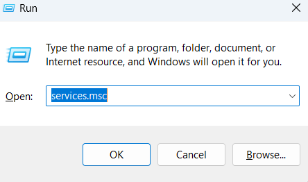 Étape 2 –Dans la boîte de dialogue, tapezservices.msc.