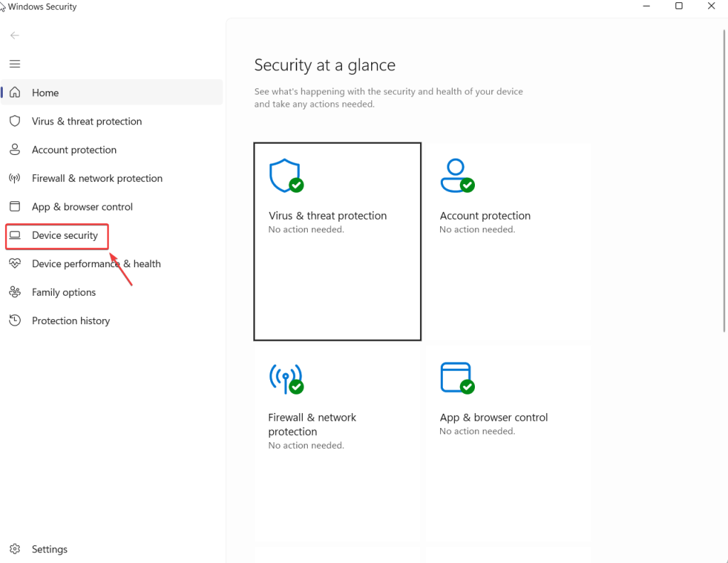 Étape 2 –De la gauche,cliquez sur Sécurité de l'appareil.