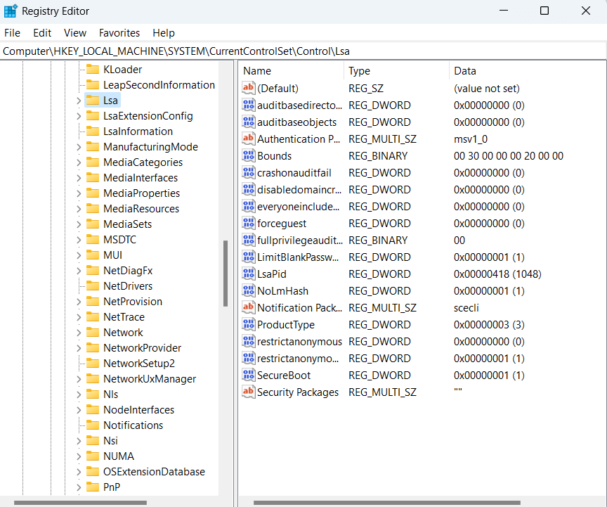 ComputerHKEY_LOCAL_MACHINESYSTEMCurrentControlSetControlLsa