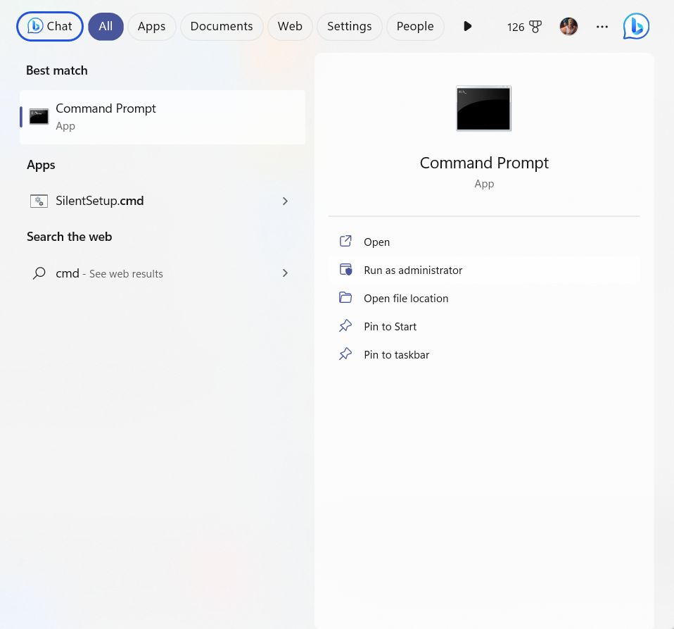 Étape 1 –Dans la barre de recherche Windows, tapezcmdet cliquez surExécuter en tant qu'administrateurdu côté droit.