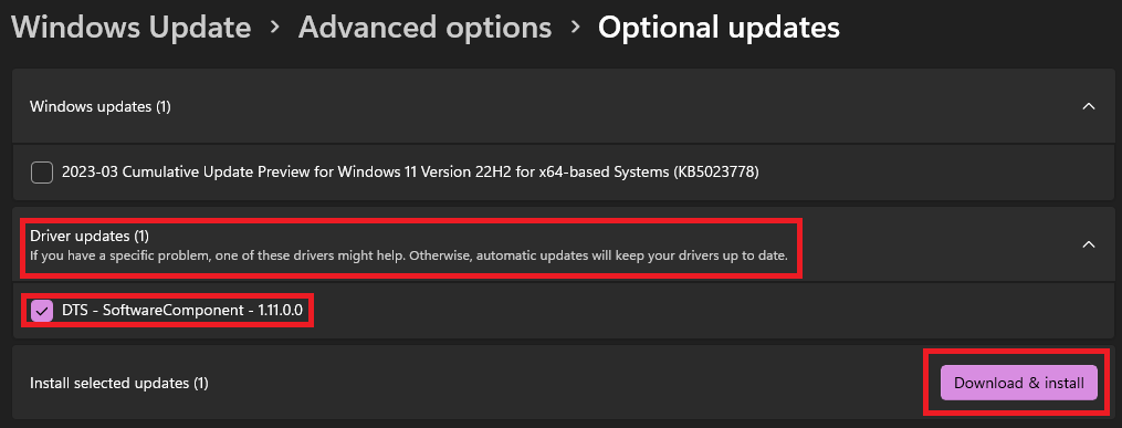 S'il y a une nouvelle mise à jour du pilote à installer, cochez la case à côté et cliquez surTélécharger & Installer.