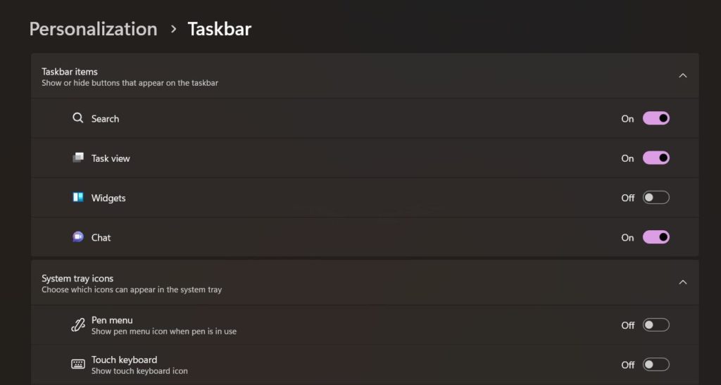 Cliquez avec le bouton droit n'importe où sur la barre des tâches et sélectionnez « Paramètres de la barre des tâches ».