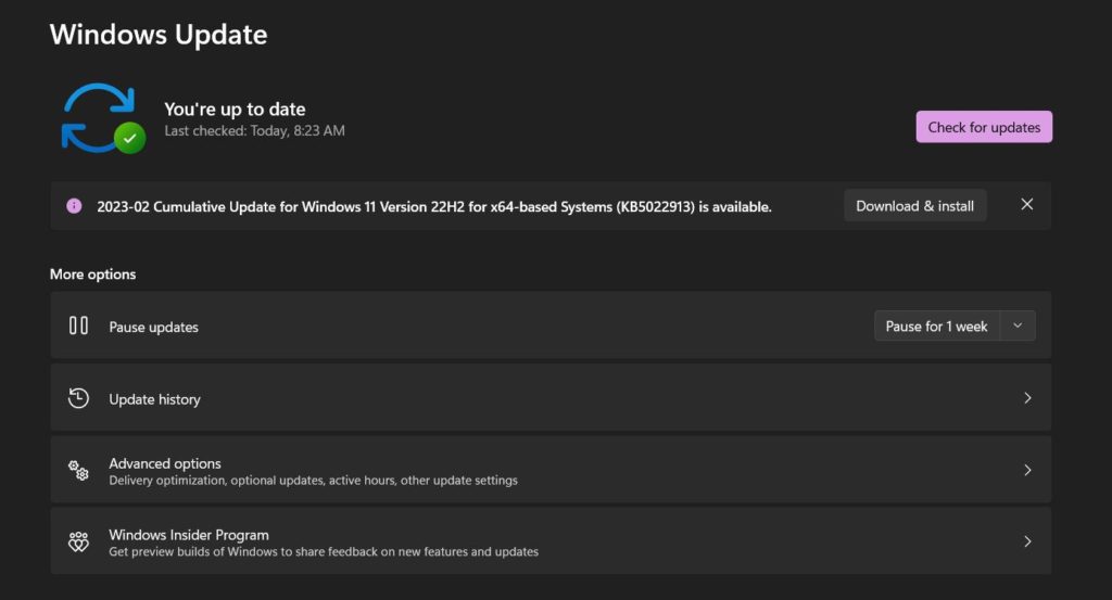 Windows va maintenant vérifier les mises à jour disponibles. Si une mise à jour est disponible pour votre appareil, mettez immédiatement à niveau votre PC.