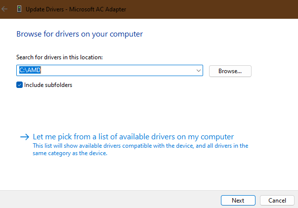 5.Vous pouvez également mettre à jour les pilotes manuellement en choisissant l'optionParcourir mon ordinateur pour les pilotesoption. Une fois que vous avez cliqué sur cette option, localisez le fichier de mise à jour sur votre ordinateur à l'aide duParcouriret suivez les instructions à l’écran pour terminer le processus.