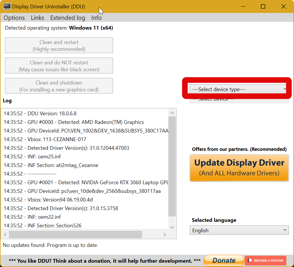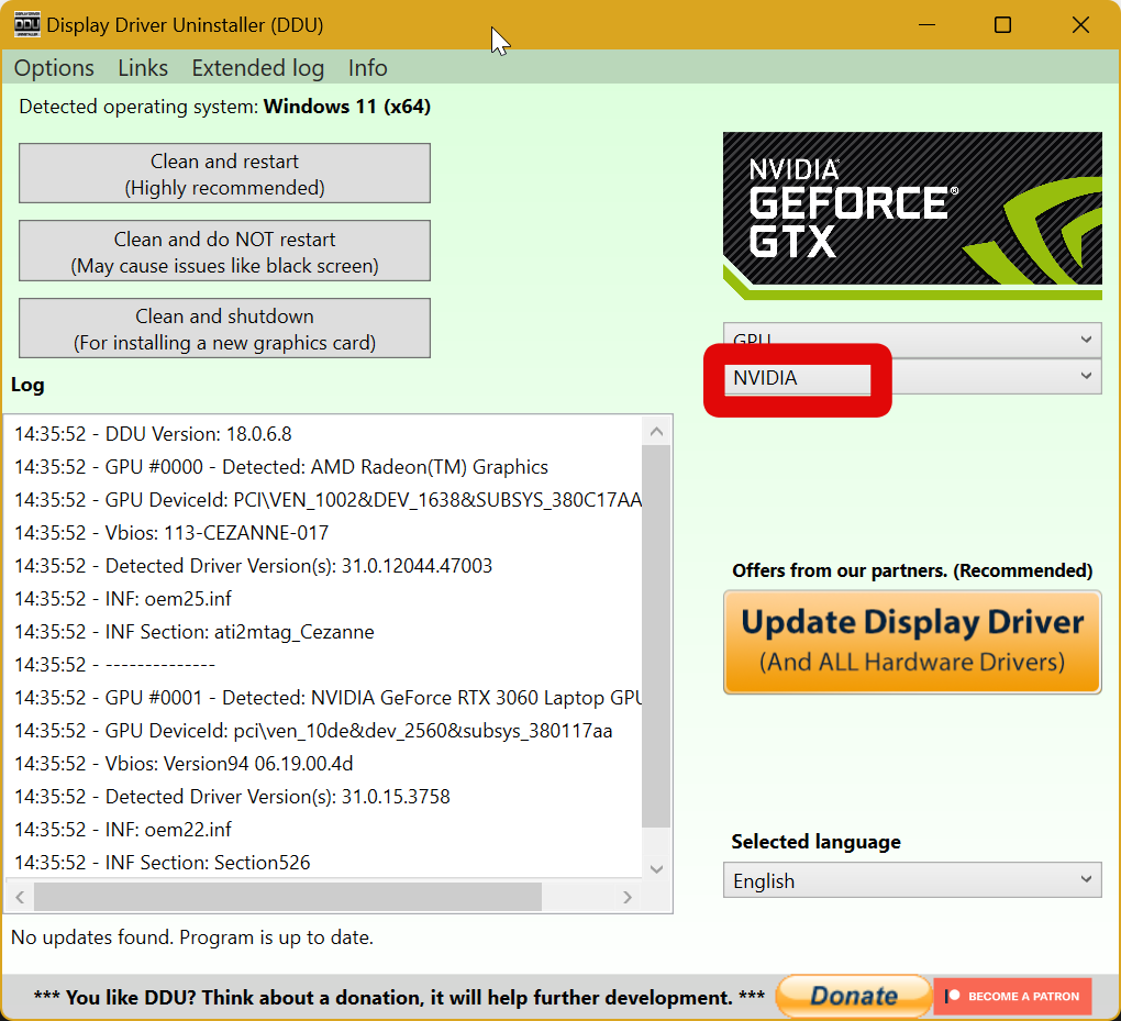 11. Supprimez les pilotes à l'aide de DDU et installez les pilotes GeForce à partir de zéro