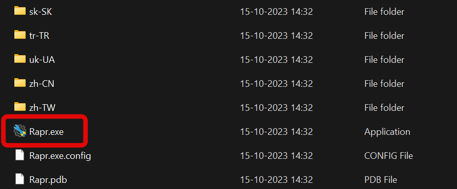 5.Une fois l'archive extraite, ouvrez le dossier et lancez le fichier Rapr.exe en double-cliquant dessus.