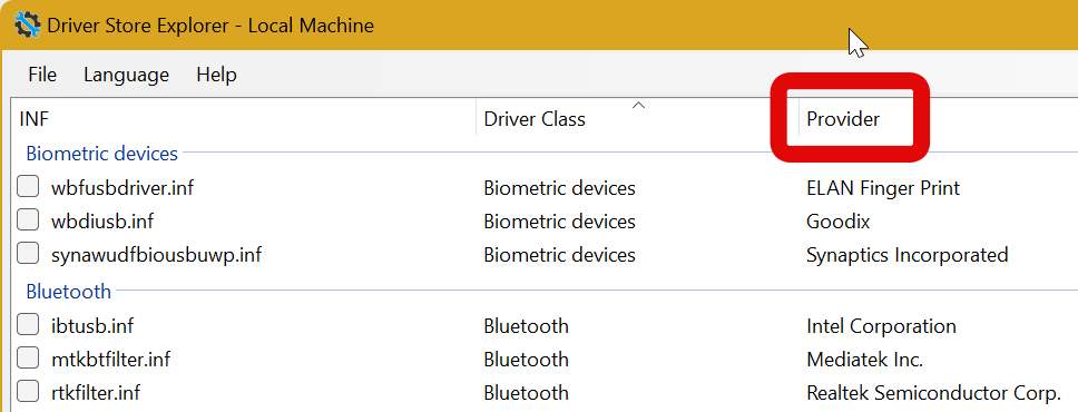 6.Cliquez sur leFournisseurcolonne en haut. Cela triera tous les fournisseurs de pilotes par leur nom, par ordre alphabétique croissant.