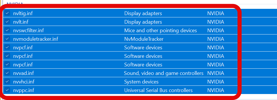 7.Cochez la case à côté de tous les pilotes fournis par Nvidia.