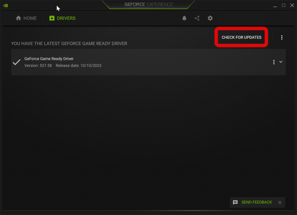 Je vous recommande maintenant de télécharger et d'installer les pilotes via GeForce Experience s'il a été installé sur votre PC. L'expérience GeForce peut parfois interférer avec les installations manuelles des pilotes ; ainsi, son utilisation pour mettre à jour les pilotes peut résoudre ce problème. Suivez les étapes ci-dessous pour vous aider à installer les pilotes via l'expérience GeForce sur votre PC.