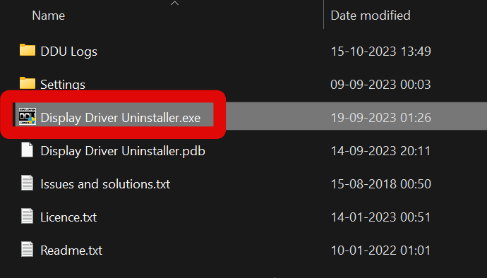 13.Lorsque votre PC redémarre, vous devriez être en mode sans échec. Dirigez-vous maintenant vers le répertoire où nous avons extrait DDU et double-cliquez sur Display Driver Uninstaller.exe.