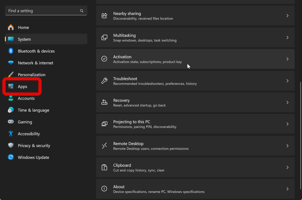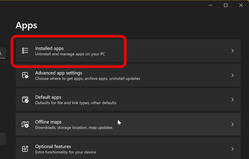 3.Cliquez maintenant surApplications installées. Cela vous permettra de visualiser toutes les applications installées sur votre PC.