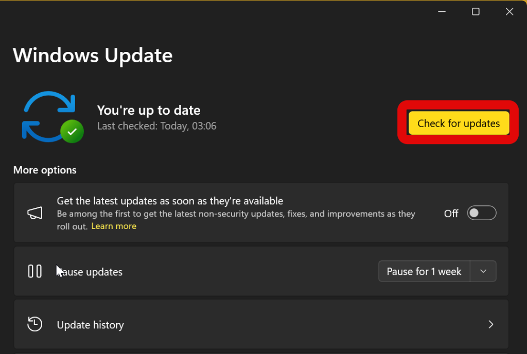 3.Cliquez maintenant surVÉRIFIEZ LES MISES À JOURdans le coin supérieur droit.