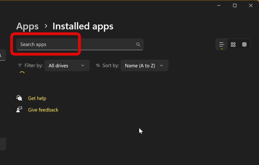 4.Cliquez sur la barre de recherche en haut, qui vous permettra de rechercher les applications installées sur votre PC.