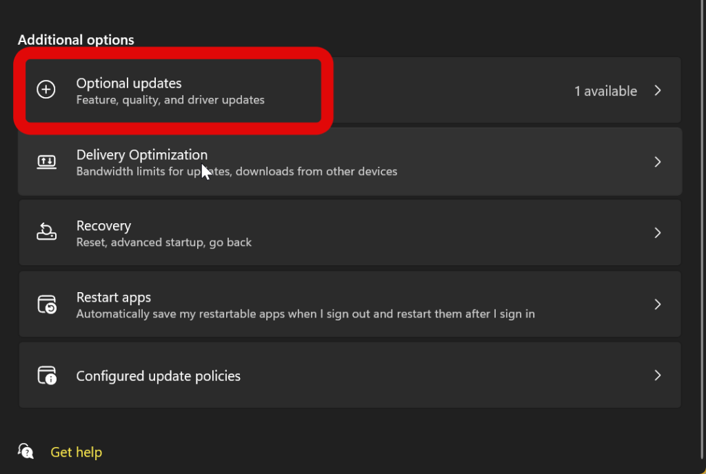 6.Ensuite, cliquez surMises à jour facultatives, qui apparaîtra sousOptions supplémentaires.