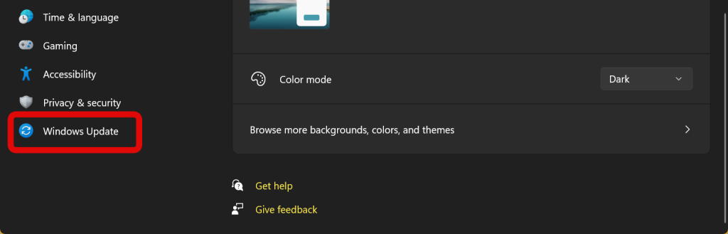 2.Cliquez maintenant surMise à jour Windowsdans la barre latérale gauche de votre écran.