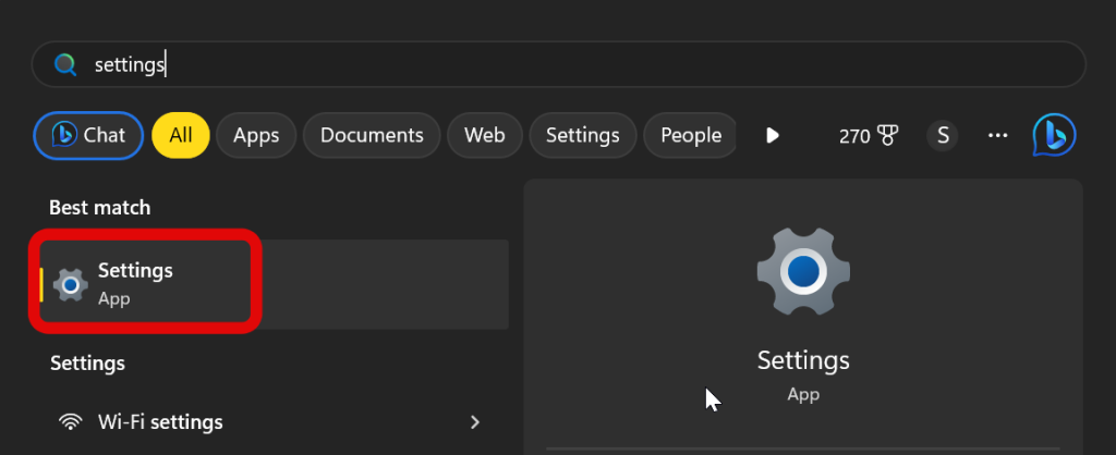 1.Ouvrez leParamètressur votre PC en lançant le menu Démarrer et en recherchant la même chose. Lorsque l'application apparaît dans vos résultats de recherche, cliquez dessus pour ouvrir les paramètres de votre PC.