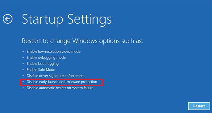 3.Ensuite, appuyez sur leTouche F8sur votre clavier pour sélectionner leDésactiver la protection anti-malware à lancement anticipéoption.