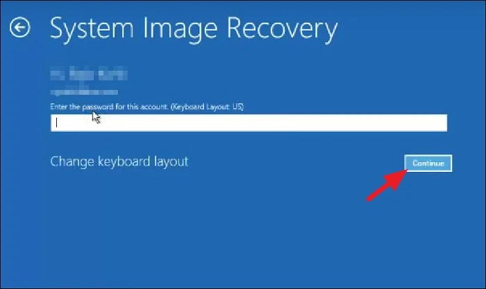 2.Ensuite, cliquez sur leRécupération d'image systèmecarrelage dans leOptions avancéesécran, puis sélectionnez votre compte utilisateur.