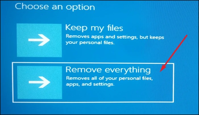 2.Ensuite, sélectionnez leSupprimer toutoption duChoisissez une optionécran, car vous devez supprimer toutes les données stockées sur votre ordinateur.