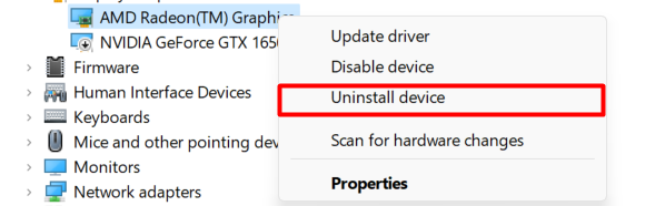 3.Maintenant, sélectionnez leDésinstaller l'appareiloption dans le menu contextuel pour supprimer le pilote graphique de votre PC Windows 11.