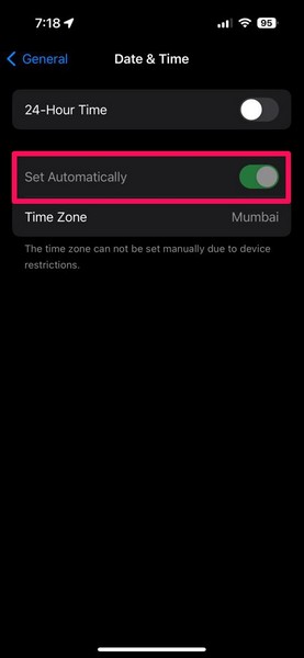 4.Ici, assurez-vous que la bascule pour leDéfinir automatiquementl'option estallumé.