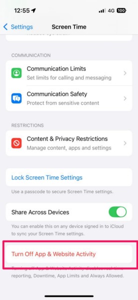 Bien qu'il n'existe pas de moyen direct de réinitialiser le temps d'écran sur l'iPhone, les utilisateurs peuvent désactiver la fonctionnalité à partir de sa page de paramètres dans l'application Paramètres et la réactiver sur leurs appareils iOS pour la réinitialiser.