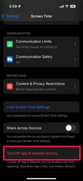 5.Avec cela, Screen Time sera désactivé sur votre iPhone.
