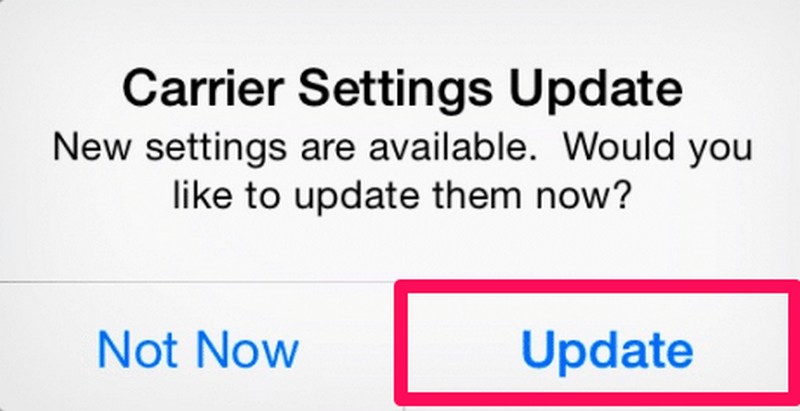 5.Si une mise à jour des paramètres de l'opérateur est disponible pour votre iPhone, vous verrez unMise à jour des paramètres de l'opérateursurgir.