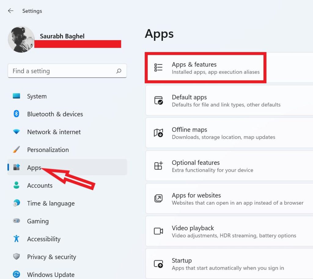 - Maintenant, appuyez surApplications et fonctionnalitéspour l'ouvrir. Vous trouverez ici toutes les applications installées sur votre PC/ordinateur portable.