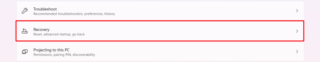 1.Pour commencer, ouvrez leApplication Paramètreset dirigez-vous vers leRécupérationsection.