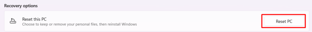 2.Ensuite, cliquez surRéinitialiser le PCsous leRéinitialiser ce PCsection.