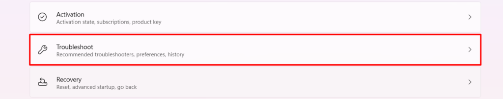 2.Ensuite, passez auDépannerpour accéder à l'utilitaire de résolution des problèmes intégré.