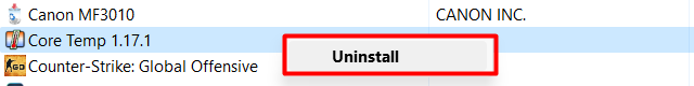 4.Enfin, sélectionnezDésinstallerà partir du menu contextuel.
