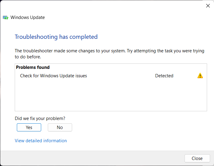5.Une fois que l’utilitaire de résolution des problèmes a détecté un problème sur l’ordinateur, appliquez-le et vous êtes prêt à partir.