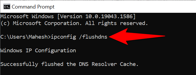 - Tapez ce qui suit dans l'invite de commande et appuyez surEntrer: ipconfig /flushdns