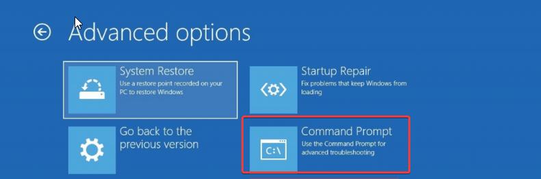 Étape 3 : SousOptions avancées, cliquez sur Invite de commandes.