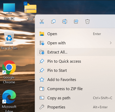 Étape 1 :Faites un clic droit sur le fichier Zip problématique et choisissez Extraire tout dans le menu contextuel.